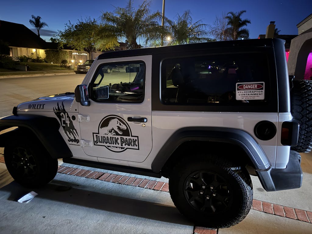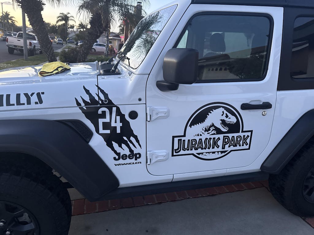 Five Piece Jurassic Park scratch vehicle decal kit with customizable color and number.